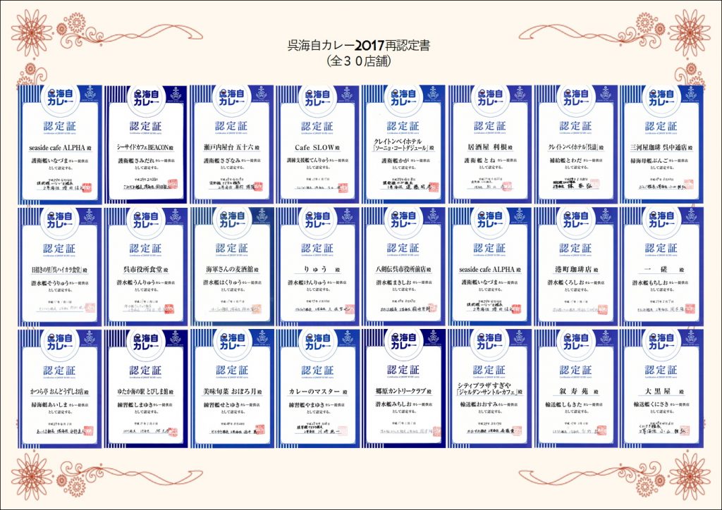入港の都合により、数店舗まだのところもありますが、認定証は、各店舗に表示しております。